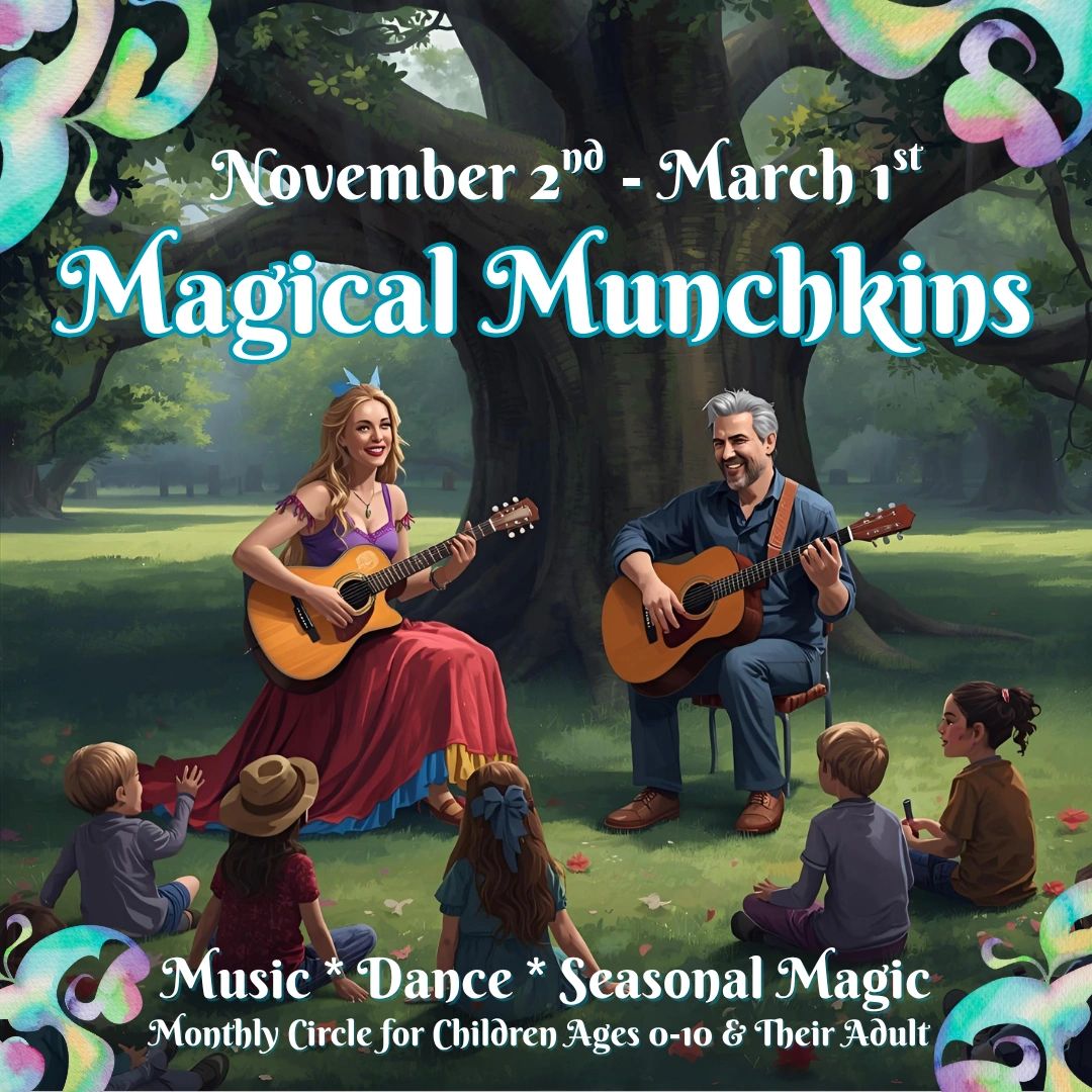 Magical Munchkins is led by Katie and Andrew Seiferth, a husband-and-wife team passionate about music, creativity, and family connection. Katie holds a Bachelor’s in Music Education and a Master’s in Adult Education and Training. She has served as a music director for over a decade, and has led programs for kids from kindergarten through high school with churches and the YMCA. Andrew holds a Bachelor’s in Art Education and is a professional artist and musician. Together, they are certified Transformational Life Coaches through SWIHA and bring years of experience as professional musicians, educators, and facilitators who delight in creating meaningful parent-child experiences through music, movement, and creativity. They have three children, ranging from ages 5 - 13.